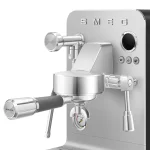 - اسپرسوساز اسمگ مدل EMC02 یک دستگاه حرفهای و زیباست که با طراحی کلاسیک و امکانات پیشرفته، تجربهای لذتبخش از تهیه اسپرسو و نوشیدنیهای گرم را به کاربران ارائه میدهد. این محصول، با تلفیق عملکرد بالا و زیبایی بصری، به یک گزینه محبوب در بین علاقهمندان به قهوه تبدیل شده است.طراحی و ظاهر منحصربهفرداسمگ EMC02 با طراحی کلاسیک و الهامگرفته از سبک دهه 50 میلادی، جلوهای خاص به آشپزخانه شما میبخشد. رنگ مشکی مات در کنار جزئیات استیل براق، ظاهری شیک و مدرن به این دستگاه داده است. ابعاد جمعوجور و طراحی ارگونومیک آن باعث میشود فضای زیادی را اشغال نکند و به راحتی در هر آشپزخانهای جا شود.